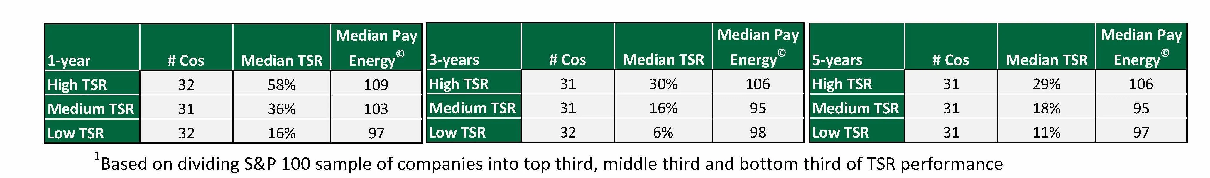 While no single metric is determinative in executive pay design, Pay Governance believes the answer to whether “drive, discipline, and speed” matters is “yes.” A look at the relationship of TSR performance and Pay Energy¬© suggests higher performing companies tend to have higher indexed scores.1