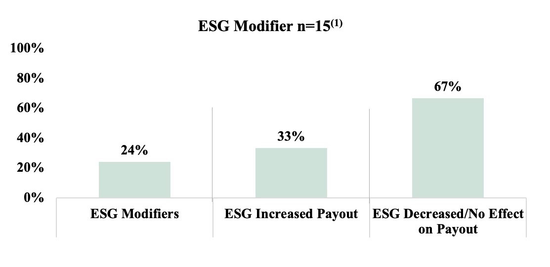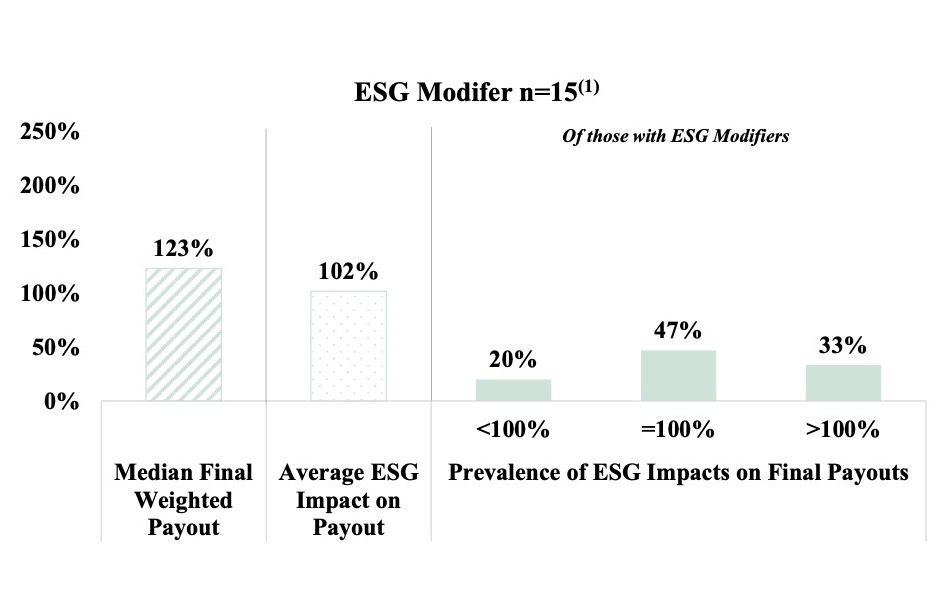 3. Of the companies that incorporated ESG metrics as part of a modifier, 33% increased payouts and the remaining 67% had no effect or reduced payouts. (Figure 3)