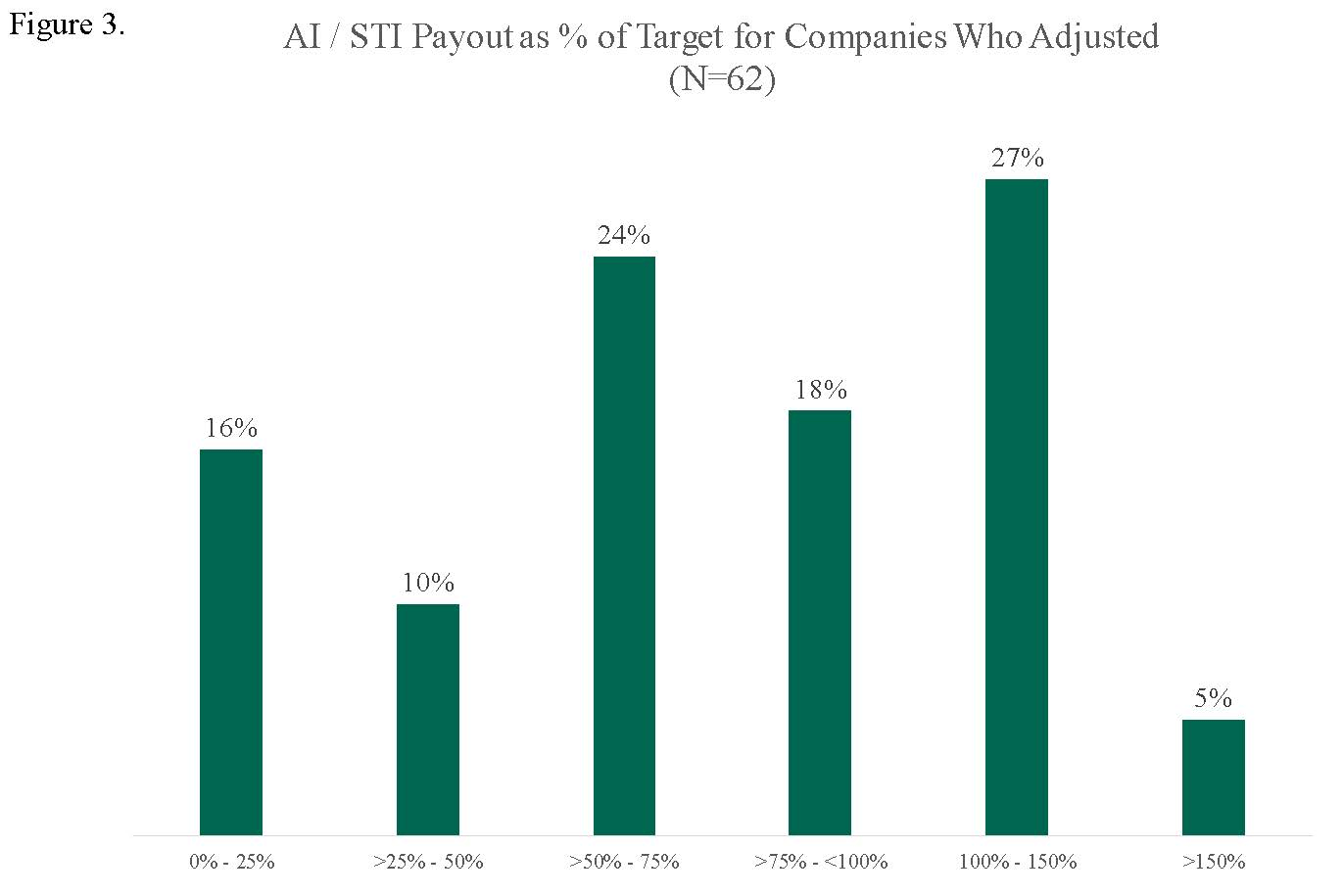 As shown in Figure 3 below, the vast majority of companies that adjusted AI plan payouts kept the final payout below target.