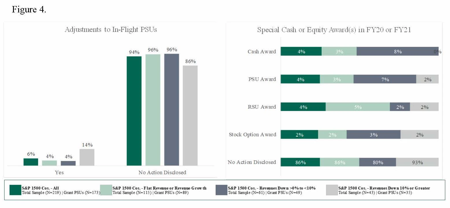 As shown in Figure 4 on the following page, most companies did not adjust their in-flight PSU plans (i.e., those with ≥1 year remaining in the performance measurement period) due to: