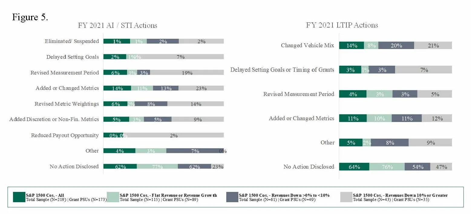 As shown in Figure 5 below, prospective changes to 2021 AI/STI and LTI plans (when disclosed) have been primarily related to metrics and weightings (and, for some AI plans, revised measurement periods).