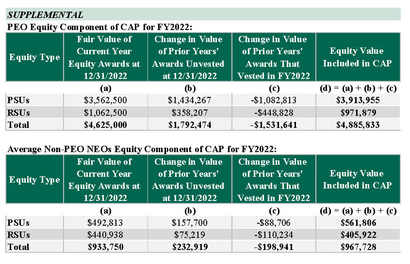 (iii) Reflects the value of equity calculated in accordance with the SEC methodology for determining CAP for each year shown. The equity component of CAP for fiscal year 2022 is further detailed in the supplemental table below.