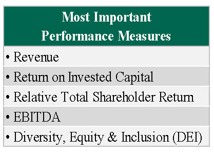 The five items listed below represent the most important metrics we used to determine CAP for FY2022 as further described in our Compensation Discussion and Analysis (CD&A) within the sections titled “Annual Incentive Compensation” and “Long-Term Incentive Compensation.”