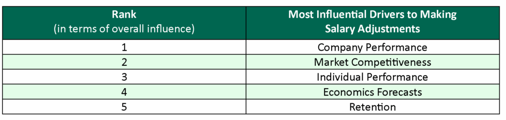 When ranking the most influential drivers of salary decisions, companies identified overall company performance and market competitiveness as the leading factors, followed by individual performance, retention considerations, and economic forecasts. Collectively, these findings point to a measured and data-driven approach to executive compensation that seeks to balance reward, retention, and financial prudence heading into 2026.