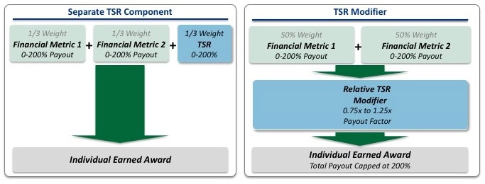- If companies determine that Relative TSR should be an incentive plan metric, such companies should consider its use as a separate component versus a performance modifier.