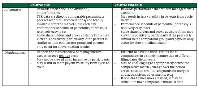 In reviewing the structure and role of relative performance measures, if any, companies should evaluate their response to the five questions below.