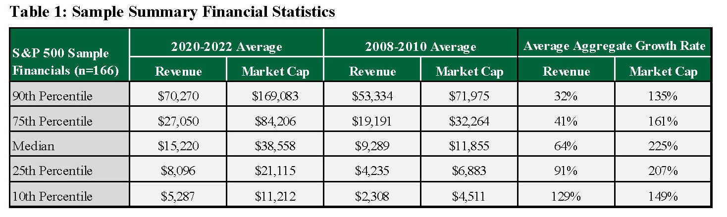 (1) Reflects time series for years included in our data set of 166 constant-companies from 2008 through 2022.